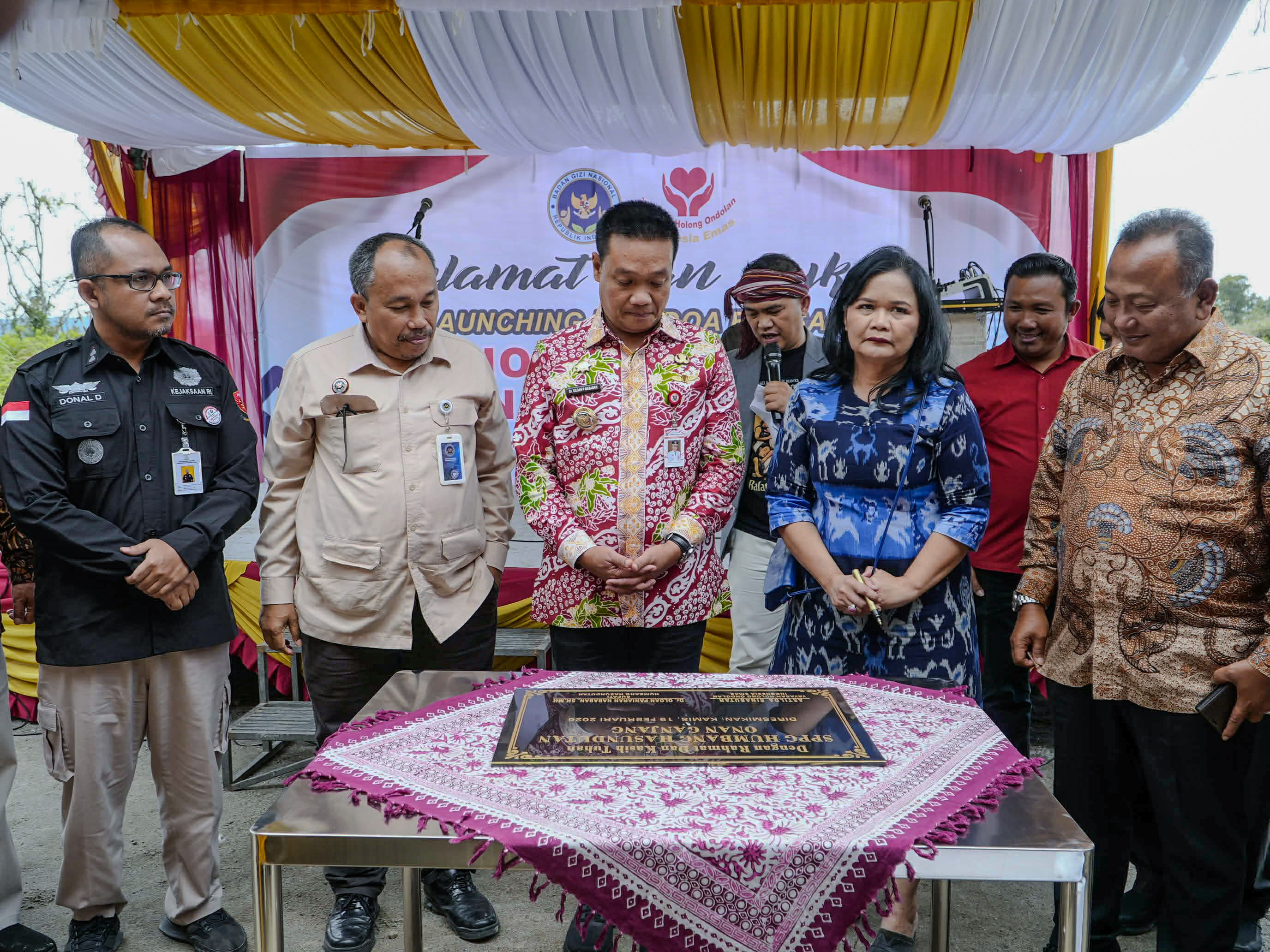 Yayasan Holong Ondolan Indonesia Emas meresmikan Satuan Pelayanan Pemenuhan Gizi (SPPG) Dapur MBG Gerindra Holong Ondolan 8 Onanganjang disaksikan langsung Bupati Humbang Hasundutan, Oloan Paniaran Nababan bersama unsur Forkopimda Humbang Hasundutan, di Kecamatan Onanganjang, Kabupaten Humbang Hasundutan, Sumatera Utara, Kamis, 19 Februari 2026.